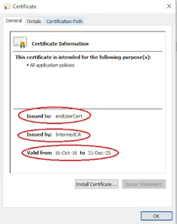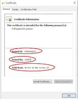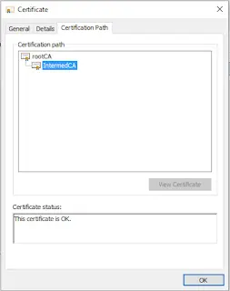 在这里你可以看到,对于 rootCA,我使用自己的私钥来签署证书。对于 intermedCA,我使用 rootCA 私钥进行签名。对于最终用户证书,我使用 IntermedCA 私钥进行签名。 在现实生活中,您还可以看到与此类似的证书链。从浏览器打开任何 HTTPS 连接证书,并观察证书链和每个证书的属性。