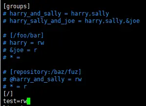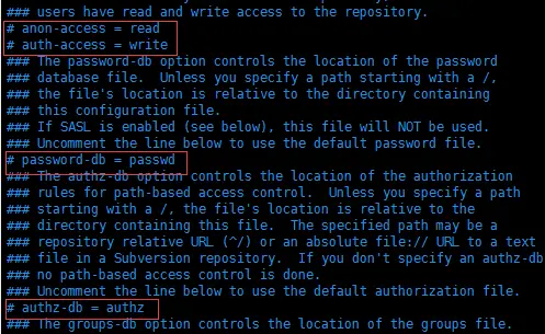 命令:sudo vi svnserve.conf
