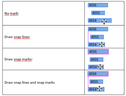两种标记仅在交互期间可见。目前无法修改捕捉线和捕捉标记的布局选项。 可以在Nodes属性页上找到用于激活捕捉线和捕捉标记的相应复选框。