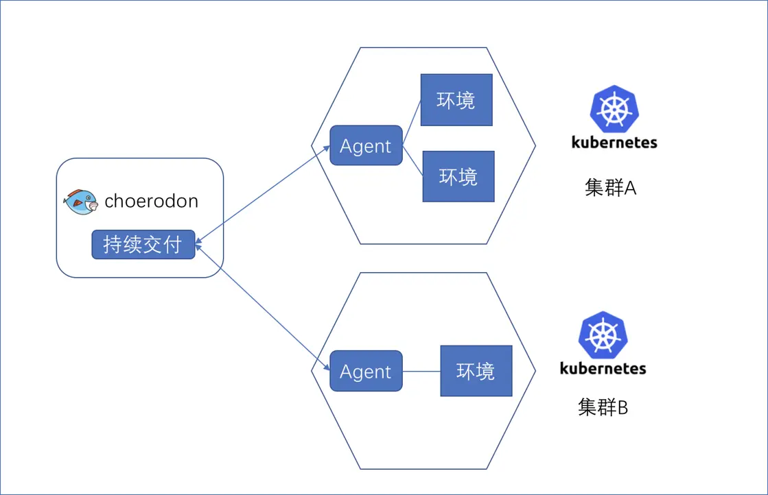 Choerodon Agent是支撑Choerodon平台持续交付部署流水线的一个核心组件,负责将平台生成的部署文件应用到应用部署环境对应的Kubernetes集群之中。并实施返回各个应用实例以及应用实例下所有资源的最新状态信息,同时通过监听各个环境对应的部署文件Git库,执行CD操作。而且支持混合云以及多云作为平台的部署环境,通过返回回来的容器信息和反馈回来各个实例下的容器,还可以实时获取容器日志,以及容器exec执行远程命令。