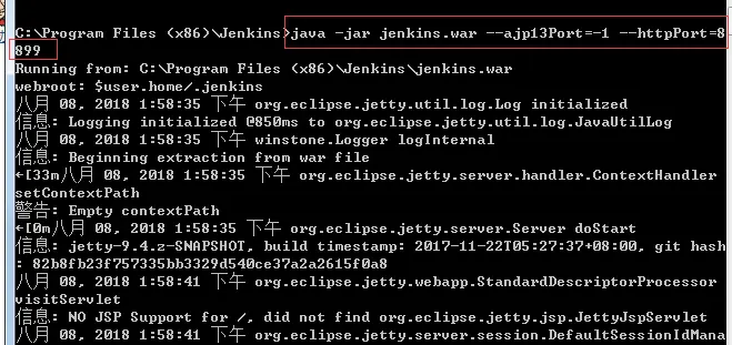 二、对 Jenkins 的操作 以管理员身份打开 cmd,进入到 Jenkins 的安装目录下: