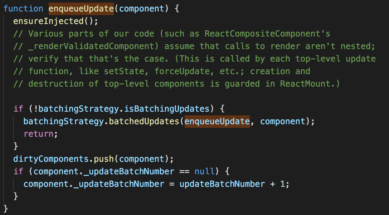接下来便是最终要的 enqueueUpdate方法了,然而这里面做了什么呢?我们接着看