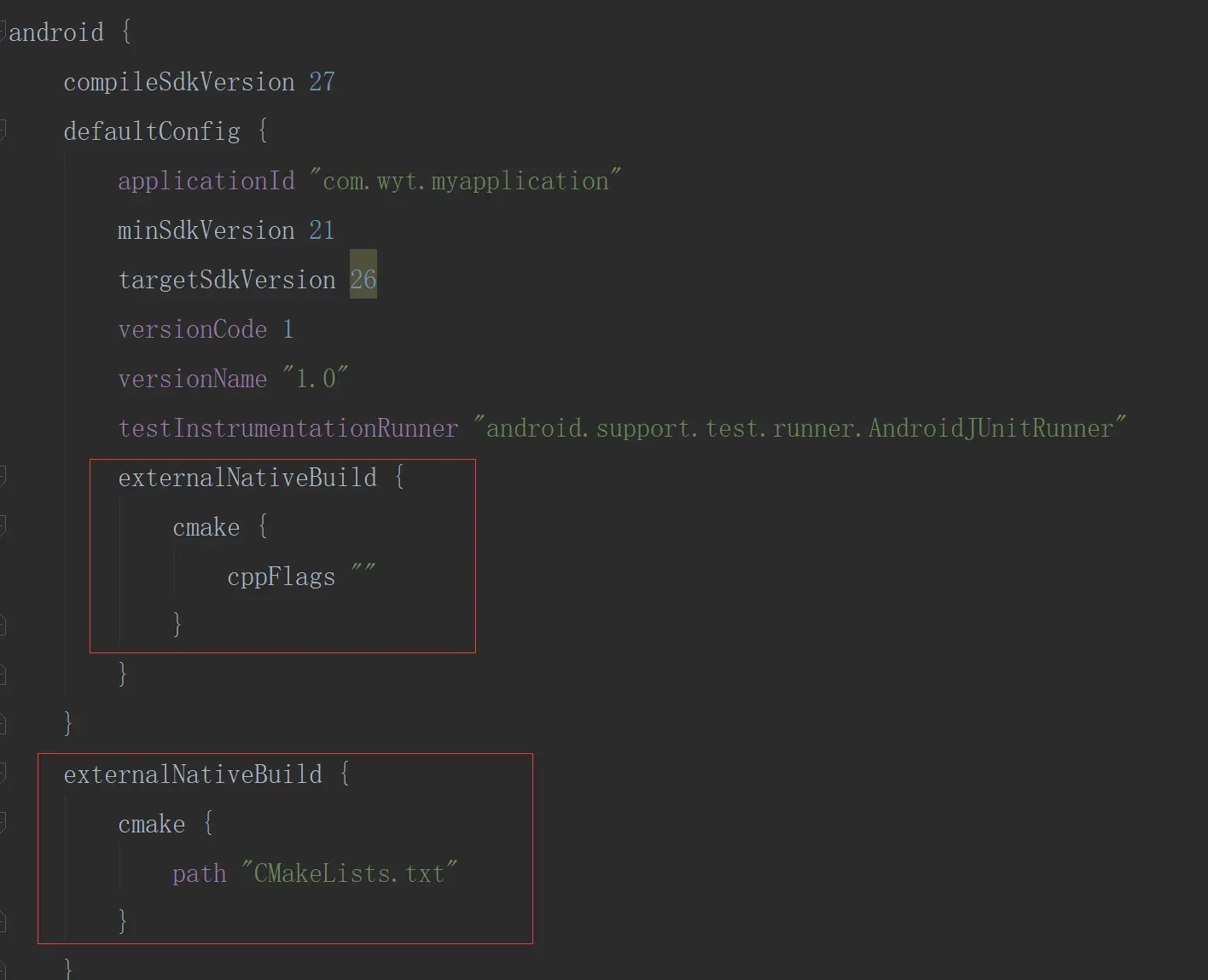 - build.gradle(app)文件增加了对 externalNativeBuild 的配置