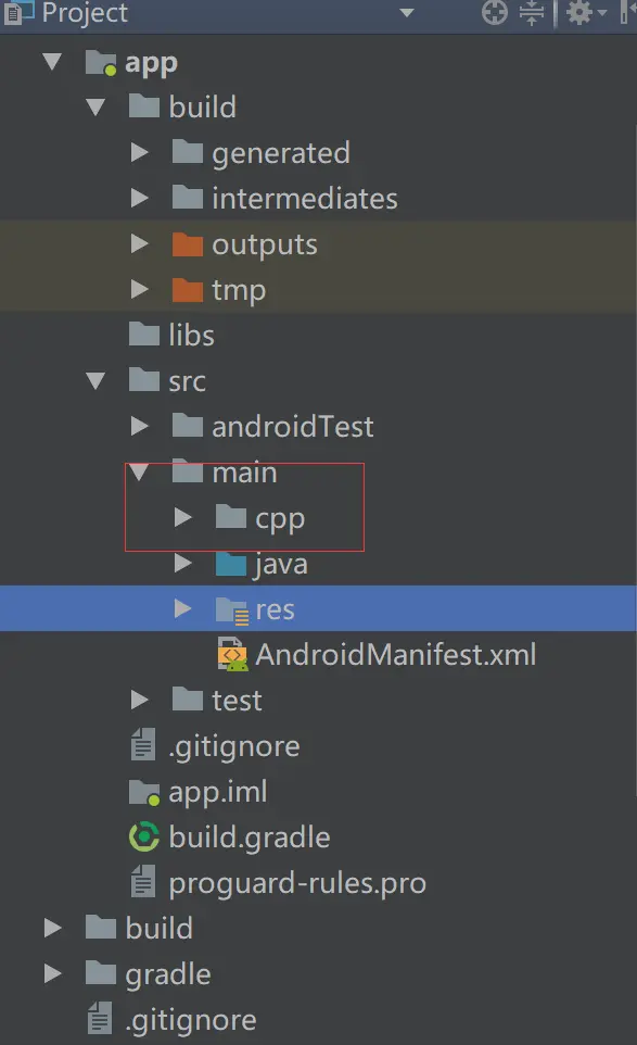 - 首先在 main 目录下新建 cpp 文件夹,存放 native 源文件。