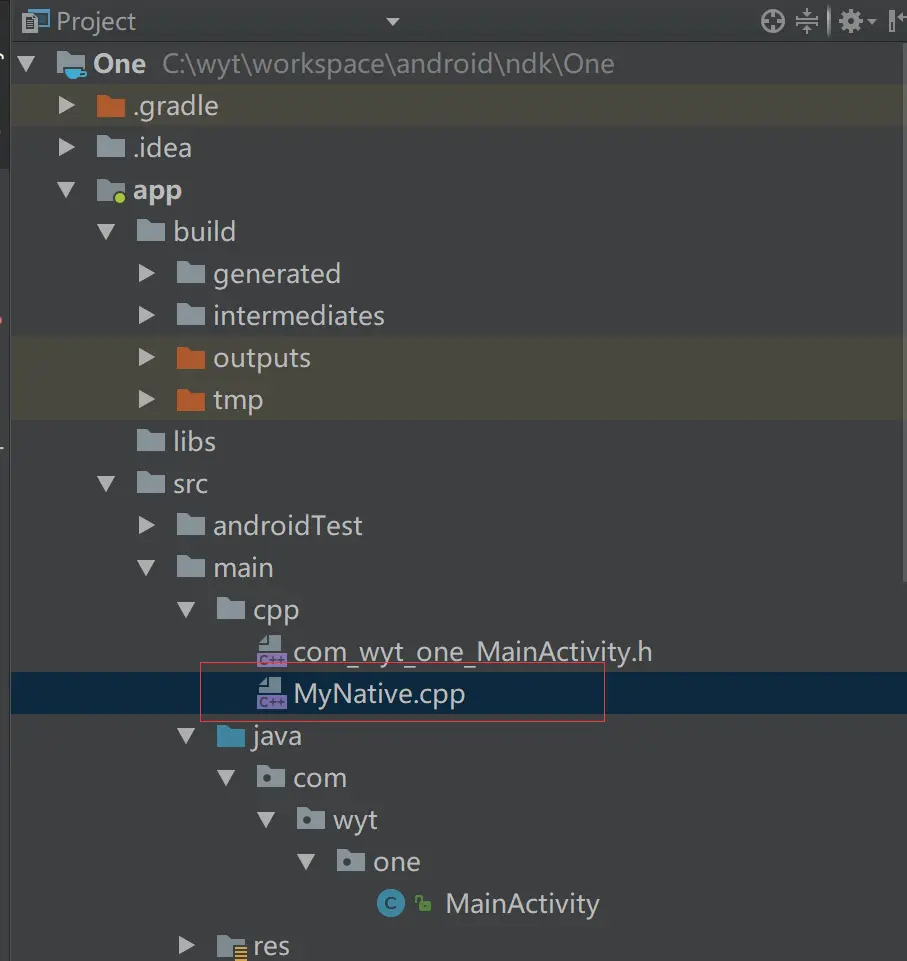 - 现在有了 native .h 头文件,头文件中只有对方法的声明,没有方法的实现,还需要对头文件进行实现。在 cpp 目录下新建 MyNative.cpp 文件,输入代码。