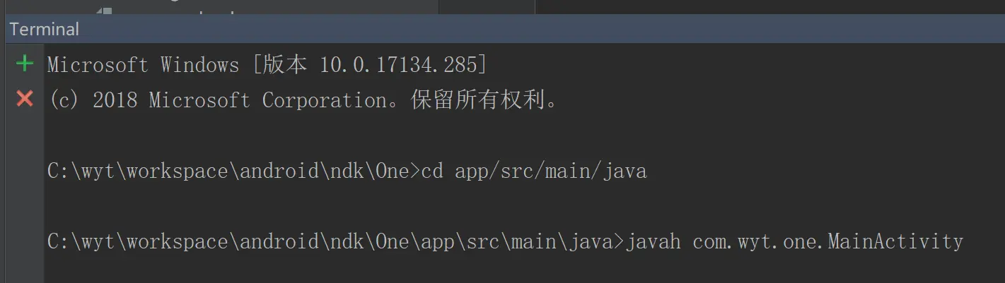 - 命令行进入 src/main/java 目录下,执行 javah 命令,生成 native 头文件,就是 .h 文件,然后移动该 .h 文件到刚才新建的 cpp 目录下。