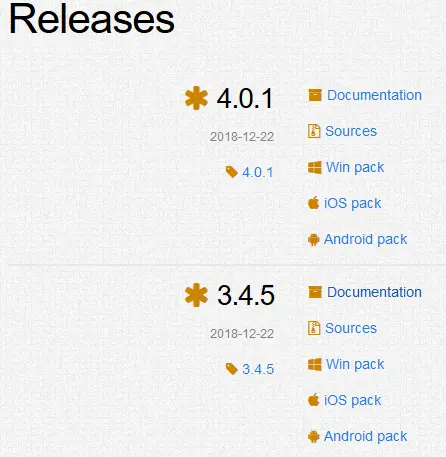 可以根据自己的工作平台下载对应的资源,本人实在android的领域下使用opencv,所以下载的是3.4.5 Android pack,后面的内容也是针对opencv在android开发中的使用。