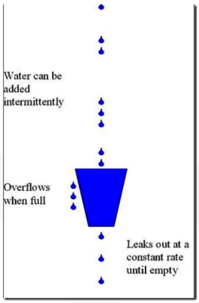 漏桶法允许以任意速率流入桶内,但流出速率是恒定的,桶满了则丢弃令牌,桶内没有令牌时则阻塞,其流程图如下: