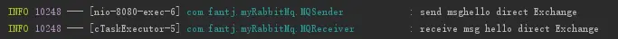 sender.sendFanout("hello fanout Exchange");