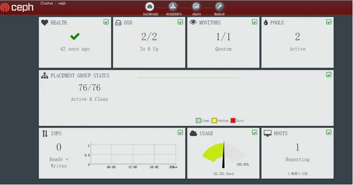 Ceph-Dash 是用 Python 开发的一个Ceph的监控面板,用来监控 Ceph 的运行状态。同时提供 REST API 来访问状态数据。