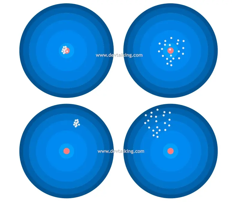上面这幅图有四个靶子,可以很好的诠释方差和偏差的概念。红色靶心就相当于我们目标,灰色弹孔就相当于模型预测的值。我们来解读一下这四幅图: