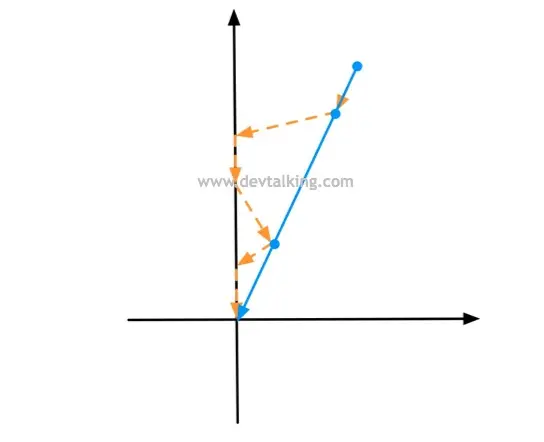 这条直线。当数据点按照LASSO的梯度寻找最优解的路线是下图情况: