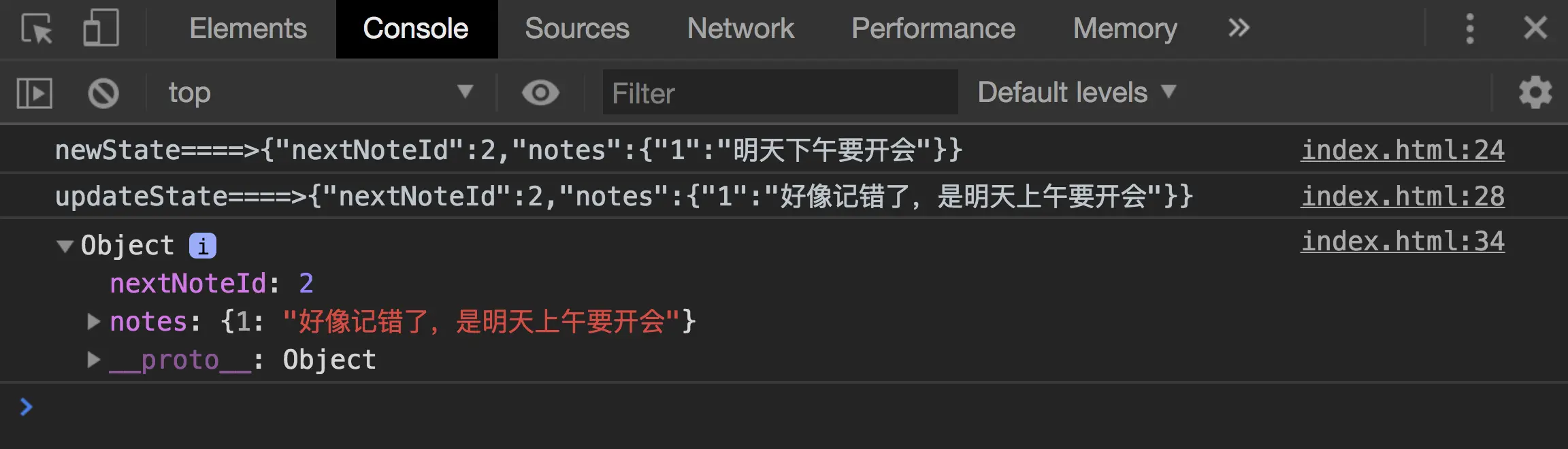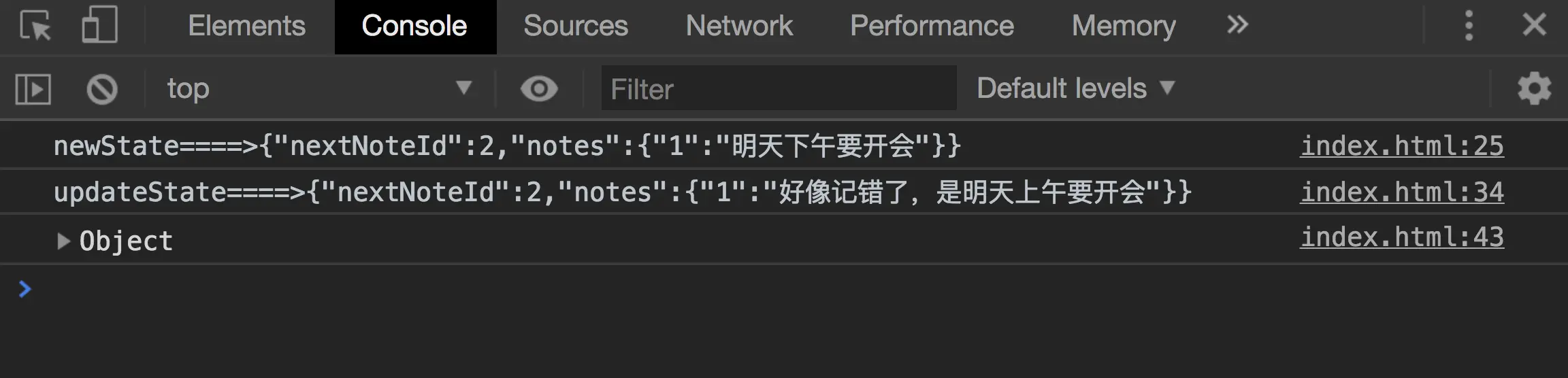 (2)commit2:完成reducer模块的功能 没有使用任何的构建工具,直接打开index.html就可以运行。需要在Google 调试工具的控制台中查看结果,界面上并无内容。这个commit主要就是实现了一个reducer,并在index.html中调用了reducer.js,主要是调试了一下reducer是否可以正常的运行。reducer实现的代码部分如下。