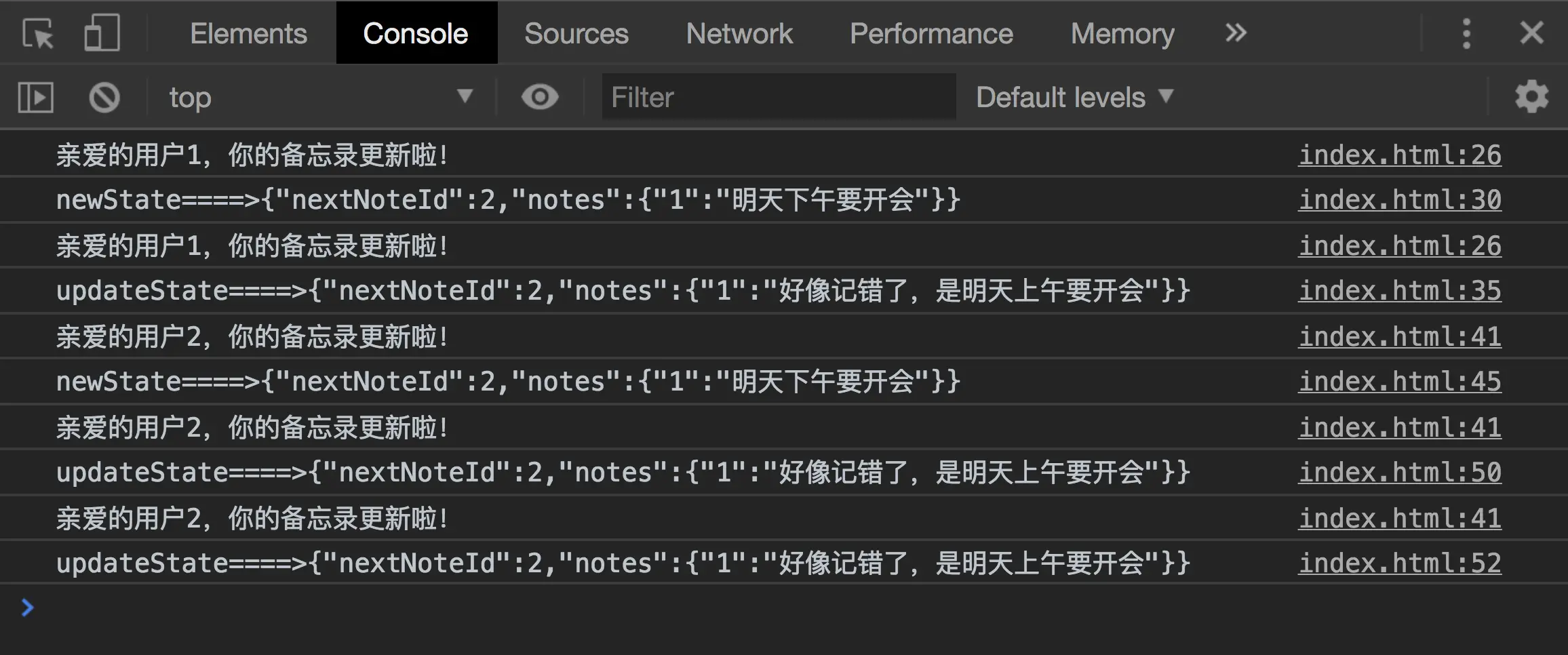 基本实现redux后,来测试一下自己写的redux是否正常运行。以下为正常运行的结果:
