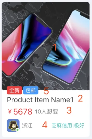 信用的信息显示在右边,头像的右下角还有一个绿色小点。 - 包邮、全新等信息。