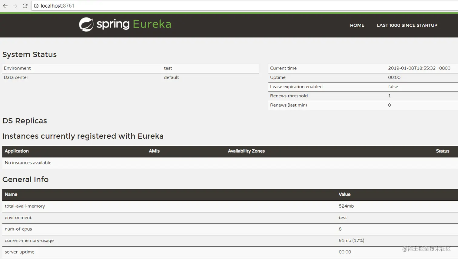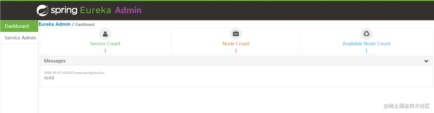 Eureka Admin的github地址 : github.com/SpringCloud…