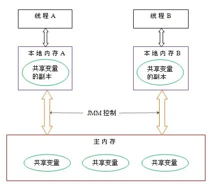 Java内存模型规定了所有变量都存储在主内存中,每个线程有自己的工作内存,线程对变量的所有读写操作都必须在工作内存中进行,不同的线程之间也无法访问对方工作内存中的变量,线程之间变量值的传递均需要通过主内存来完成。工作内存中保存了该线程需要用到的变量为主内存中变量的副本。这里变量包括实例域、静态域和数组元素,但不包括局部变量、方法参数和异常处理参数,因为他们不在线程之间共享,所以不受内存模型影响。