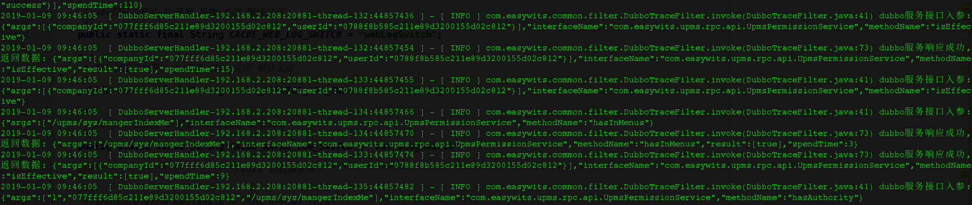LOGGER.info("dubbo服务接口入参: " + JSON.toJSONString(serviceRequest));