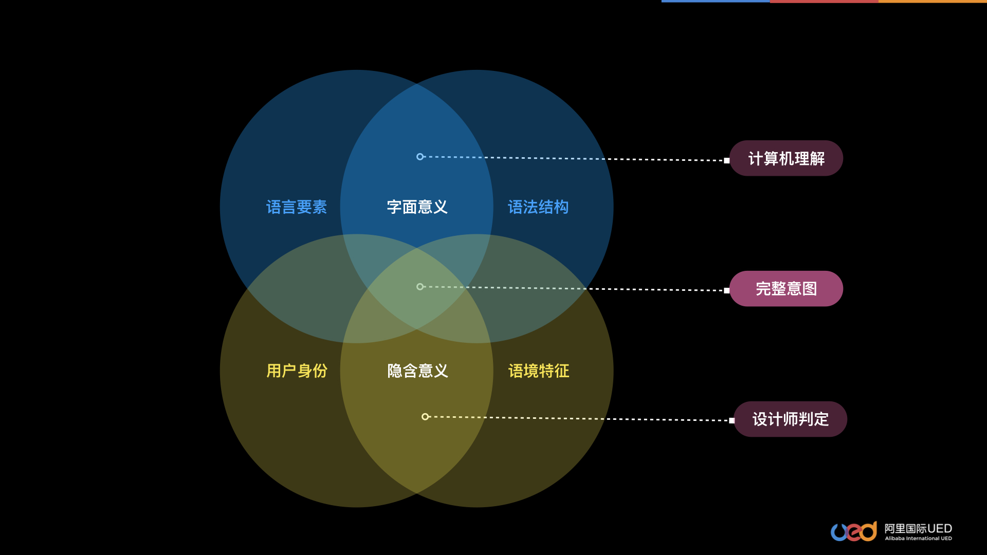 刺激语言表达的来源有两种,一种是说话人的内在感受,一种是客观环境的外部语境。那么,要想知道用户在语音交互场景中会「说什么」,首先需要分析用户是谁,即分析用户画像;其次要分析交互场景,除了空间时间场景外,多模态的交互界面也是场景语境的一种。 除此之外,我们也能够运用一些语言学上的方法来帮助我们在前期进行用户意图的挖掘。