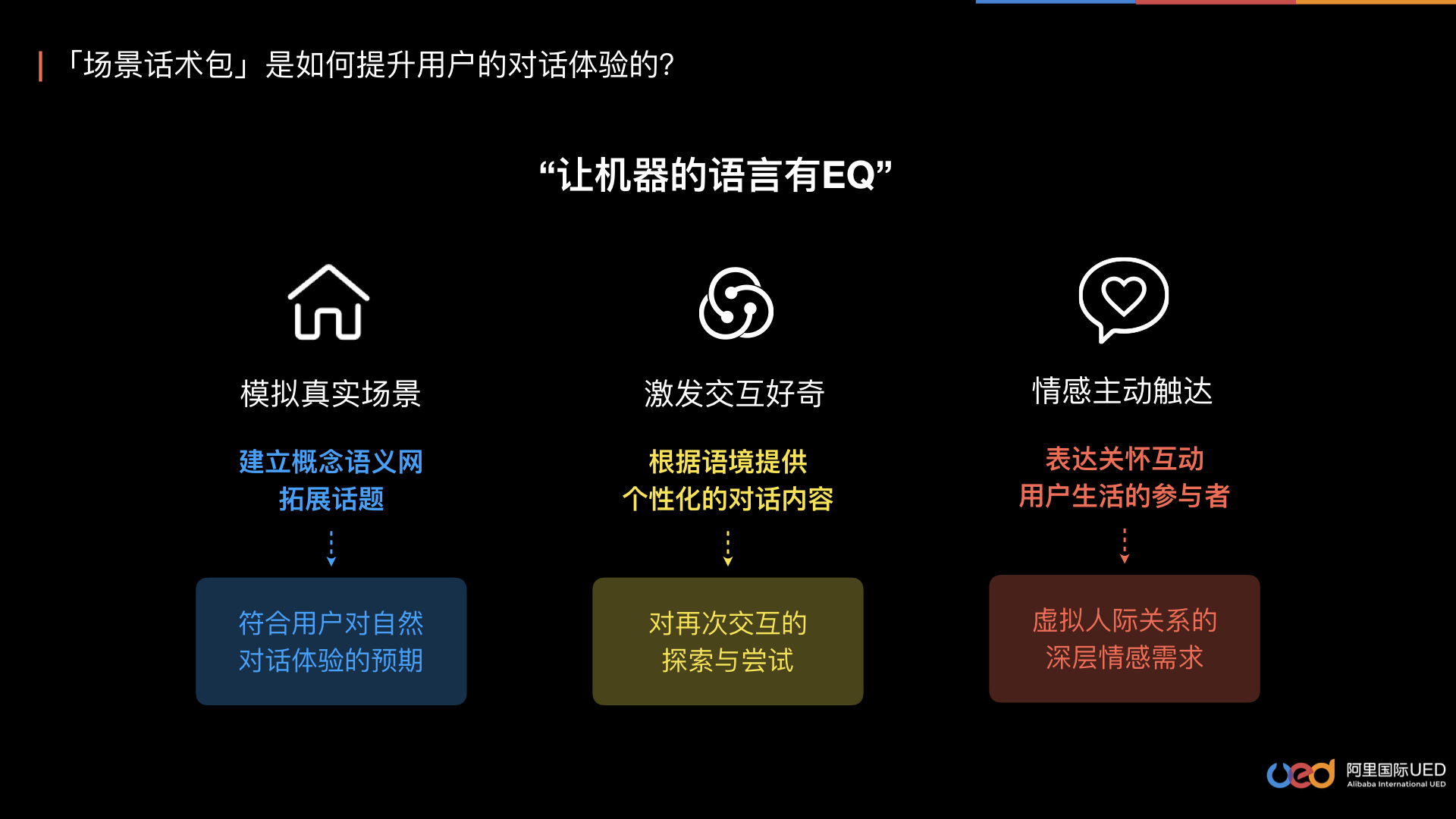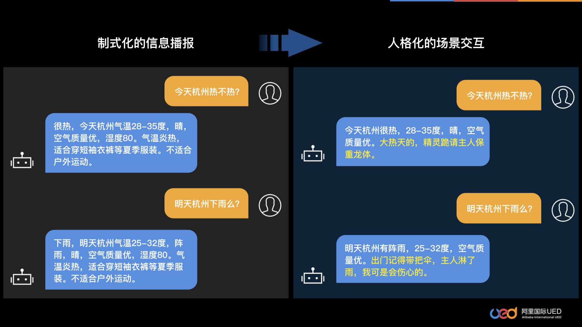 所谓“妙语匠心”,人工智能在语音交互中所展现出的每一分“妙语”,不仅仅是强大技术能力的支撑,实际上也蕴含着设计师十分甚至一百分的“匠心”。同时,在设计上,我们也在不断探索设计和技术的结合方式,在对话内容和对话剧本的自动生成、人格化语言体系的构建等方面,我们已经开始了一些探索。语音交互行业才刚刚崭露头角,我们在设计上还有很长的路要探索,设计和科技需要携手不断拓展边界,我们共同的目标都是提供给用户更好的服务、带给用户更好的体验。不管技术如何发展,时代如何变迁,不变的是对人和人的需求的关注,UXD时刻关注用户视角、价值导向。