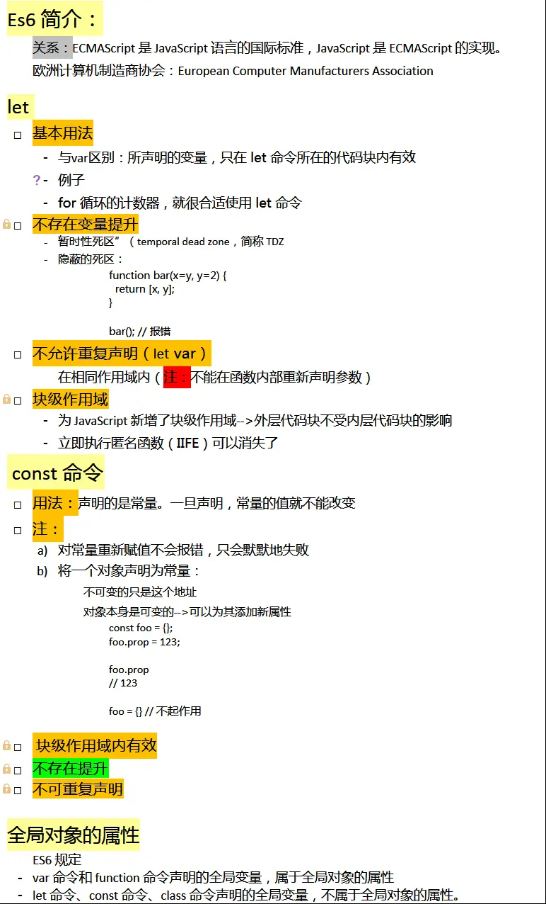 ES 6大纲总结——let 和 const 命令