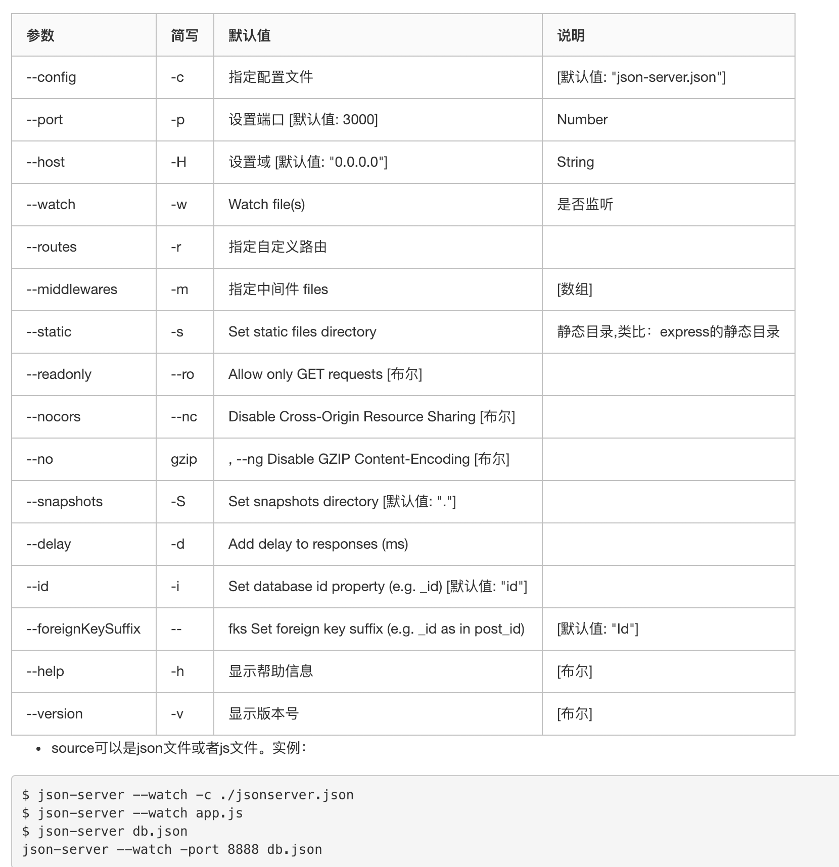 json-server 的相关启动参数