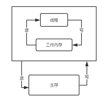 在 Java 内存模型中,规定了所有的变量都是存储在主内存当中,而每个线程都有属于自己的工作内存。线程的工作内存保存了被该内存使用到的变量的主内存副本拷贝,线程对变量的所有操作(读取,赋值等)都必须在工作内存中进行,而不能直接对主存进行操作。并且每个线程不能访问其他线程的工作内存。