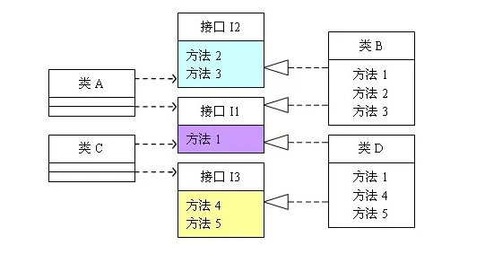 接口隔离原则的含义是:建立单一接口,不要建立庞大臃肿的接口,尽量细化接口,接口中的方法尽量少。也就是说,我们要为各个类建立专用的接口,而不要试图去建立一个很庞大的接口供所有依赖它的类去调用。本文例子中,将一个庞大的接口变更为3个专用的接口所采用的就是接口隔离原则。在程序设计中,依赖几个专用的接口要比依赖一个综合的接口更灵活。接口是设计时对外部设定的“契约”,通过分散定义多个接口,可以预防外来变更的扩散,提高系统的灵活性和可维护性。