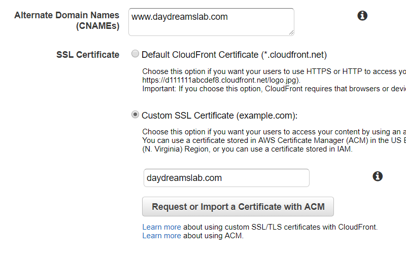 Note: Again, if you are using another DNS service you’ll need to go update the CNAME record from there to point to the CloudFront domain name.