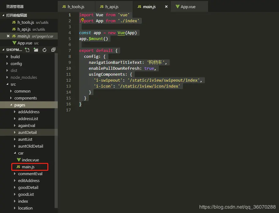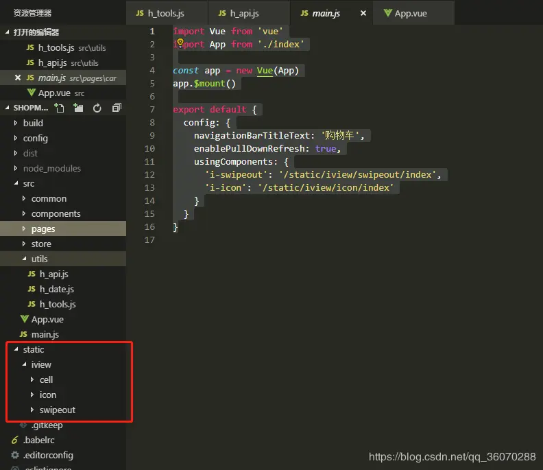 在mpvue项目中建议大家把dist目录放在static文件夹下,如下