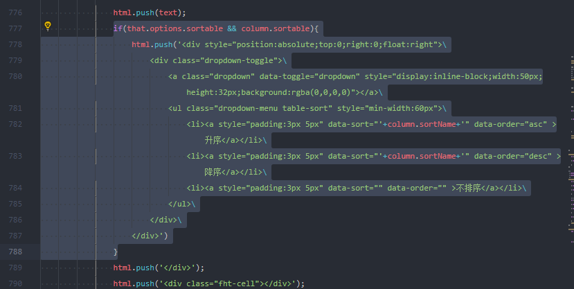 1、在initHeader函数里进行循环colums的时候通过判断options.sortable和column.sortable进行class标记是否排序字段