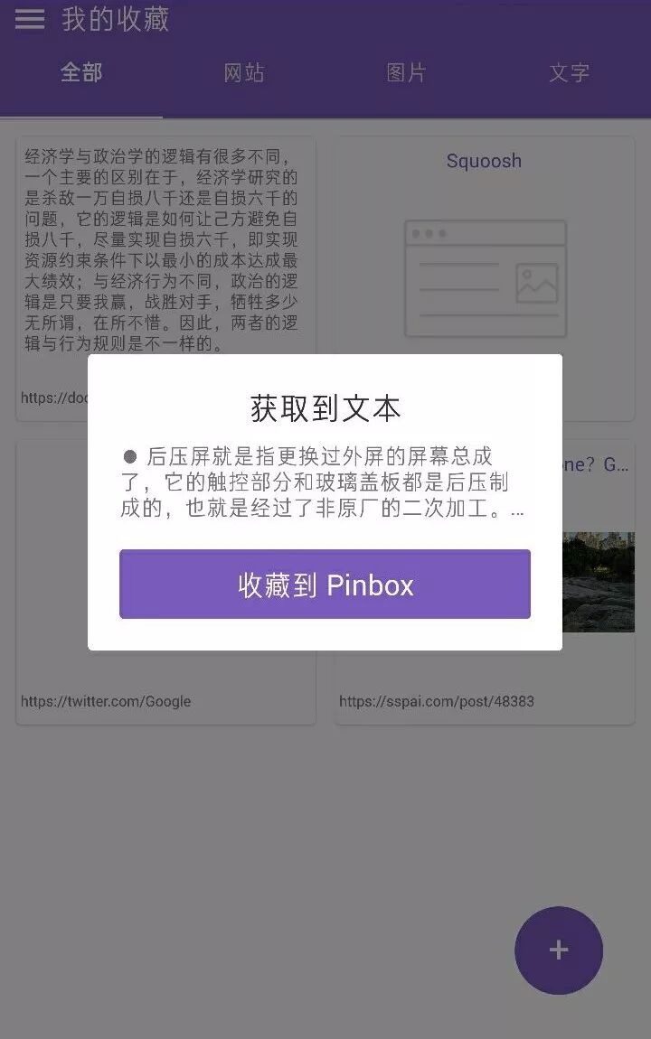 Pinbox 的跨平台同步异常迅速,PC 收藏一份文件,还没低头,手机就闪现出来,跨浏览器同步也一样。