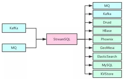 扩展DDL语法。如下图所示,打通了滴滴内部主流的消息队列以及实时存储系统: