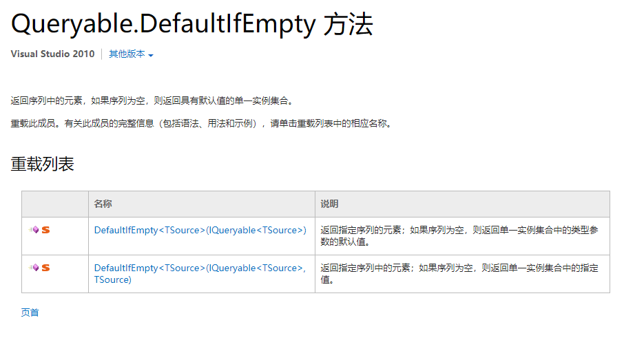主要就是用到了DefaultIfEmpty()方法,MSDN文档如下