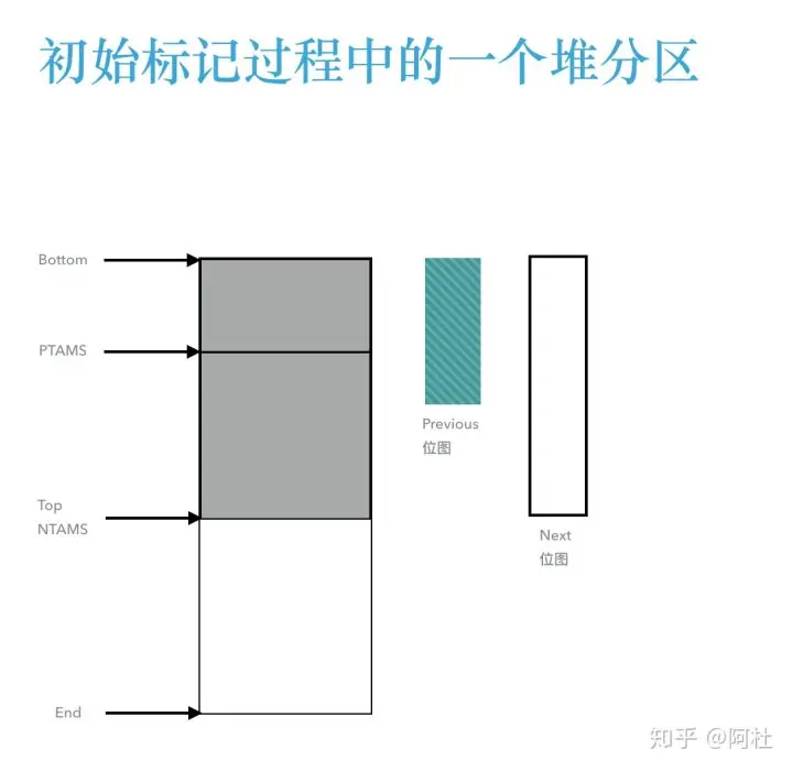 - 位于堆分区的Bottom和PTAMS之间的对象都会被标记并记录在previous位图中;