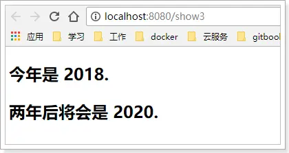 <p>今年是 <span th:text="2018">1900</span>.</p> <p>两年后将会是 <span th:text="2018 + 2">1902</span>.</p>