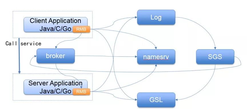 微众银行基于Apache RocketMQ构建了自己的分布式消息服务架构,我们以RMB(Reliable Message Bus)为接入层,以基于Apache RocketMQ定制开发的WeMQ(WeBank Message Queue)为消息服务核心,通过GSL(Global Service Location)进行服务定位,通过SGS(Service Governance System)进行服务请求和服务响应的服务治理,整个分布式链路的追踪日志会上报到Log中。