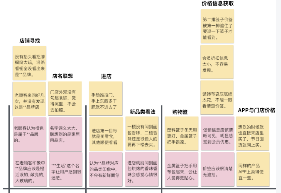 常用的分析工具是亲和图(心智模型图),即把大量收集到的事实、意见或构思等定性资料,按其相近性进行归纳整理的一种方法。从而展示了用户完成某个任务时产生的行为(Do)、想法(Think)、感受(Feel)。