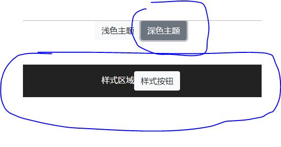 给a标签添加点击事件changTheme,参数分别为light和dark