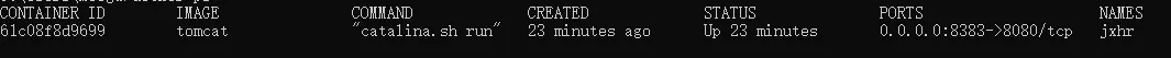 // 查看docker正在运行的容器 PORTS可以看到正在运行的项目端口号 访问lcoalhost:8383即可