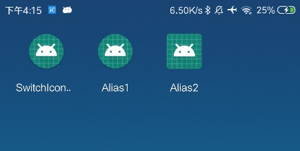 这里三个按钮点击后切换到相应的应用图标和名称,"原ACTIVITY"代表只显示MainActivity这个原来的启动入口,"ALIAS_1"代表别名1,以此类推。