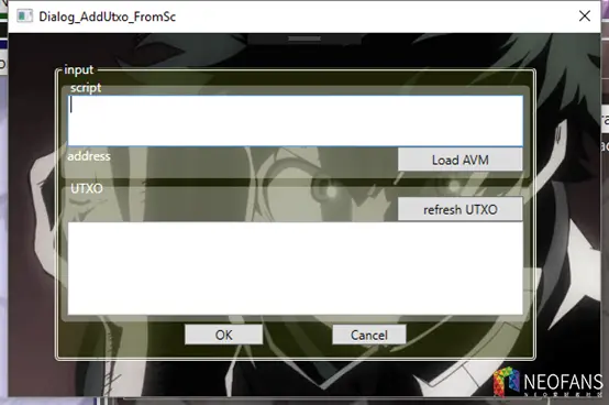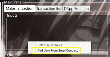在Input区域点右键,可以用智能合约增加一个UTXO