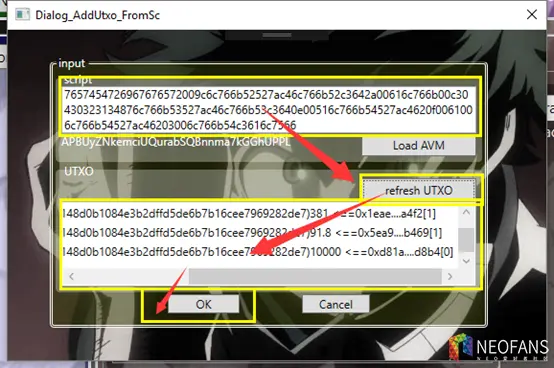 然后点refresh utxo,可以得到宣红合约的utxo,选一个