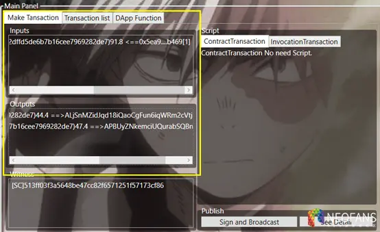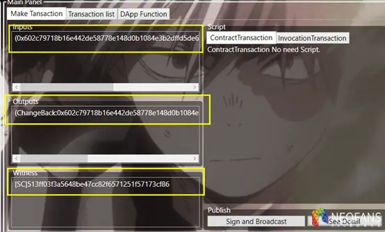 NEO交易有输入和输出。这是UTXO模型的事情,交易的输入是一个列表,其中每一项是对一个UTXO的引用。交易的输出是制造新的UTXO。