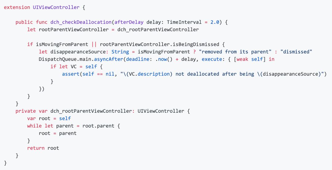 检查内存泄漏除了使用 Instruments,还有查看控制器 pop 或 dismiss 后是否被销毁,后者相对来说更方便一点。但老是盯着析构函数 deinit 看日志输出是否有点麻烦呢?
