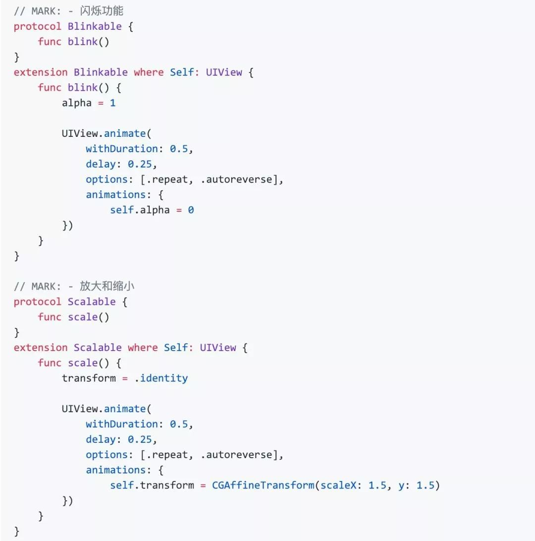 多继承的实现:协议的方法可以在该协议的extension中实现