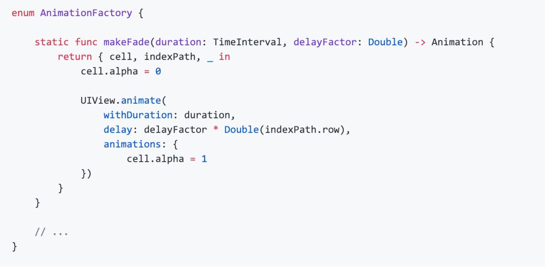 这样一个简单的淡入效果就 OK 了,但这样做显然不够优雅,我们如果要在多个TableView使用这个效果该怎样封装呢?