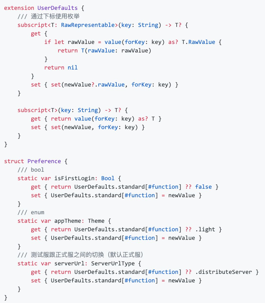 我们可以通过使用 #function 避免手动管理 key,在存储和读取数据时调动的 set 和 get 方法也可以交给目标属性默认的 set 和 get 方法去做,。