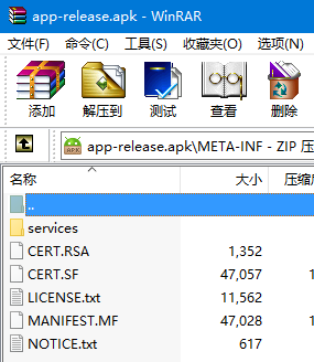 在实战的过程中我发现gradle每打一个渠道包都会重新构建,如果渠道多了的话效率还是非常低的,那么能不能缩短打包时间呢?当然是可以的! 直接解压apk,解压后的根目录会有一个META-INF目录,如下图所示: